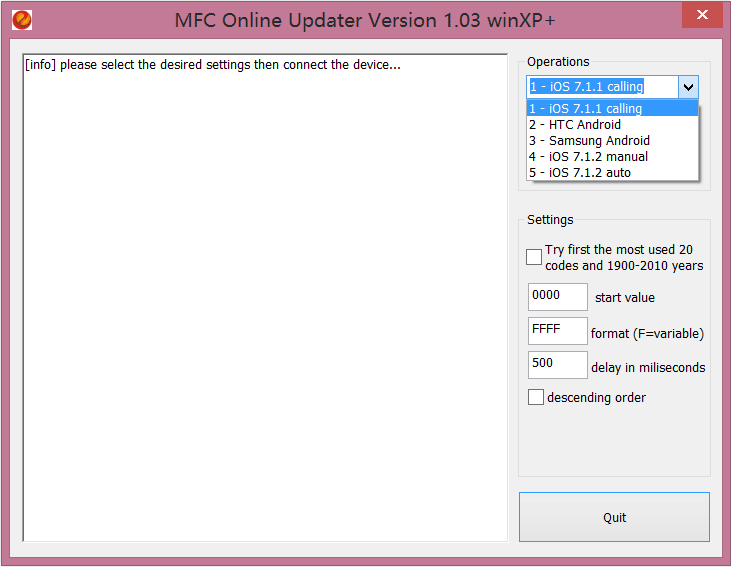 Add MFCDL tools Version 1.0 for online upgrade Add Apple iPhone Manual method for IOS 7.x Add Apple iPhone Auto method for IOS 7.x 0.0 Download File Buy Online Related Articles: iREWORK & iPOWER X V3.2 official released ! MFC Dongle V1.6 Beta2 Released SHP Version 1.04 Released ! SHP Version 1.0.3 official released Tested and supported huawei mobile list by mfc dongle MFC Dongle V1.3.1 Released MFC Dongle V1.2.9 beta Released MFC Dongle V1.2.7 Released MFC Dongle V1.2.6 Released MFC Dongle V1.2.5 Released 3824 iDevice unlock passcode