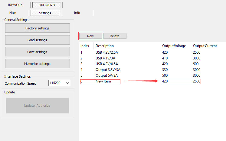 - Click on value can change output voltage and output current in needs (410=4.1V & 3000=3A)