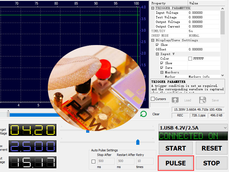 - Can test related function purpose for connected device when "Auto pulse function" enable