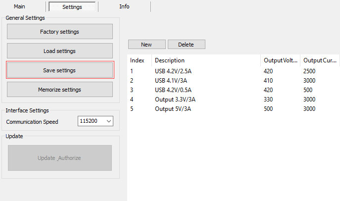 - By "Save settings" button can save all output setting options